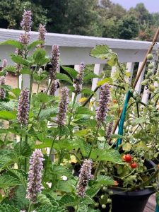 Whether you’re looking to create a pollinator garden, to add a drought-tolerant long-bloomer to your perennial border, or simply love the shade of blue, you’ll find that anise hyssop will fit the bill. I recently transplanted some of the seedlings from my garden into containers on my deck, where they not only look lovely all summer but also encourage the bees that are needed by my containerized tomato plants.  What more could a gardener ask?