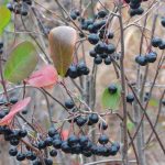 Speaking of burning bush, I recently got rid of mine. Will I miss the fall colors? Yes, but not the ridiculous number of seedlings that pop up all over in their vicinity. Now I’m on the lookout for aronias in local nurseries. They are usually available, though perhaps not this late in the season. Many online nurseries offer aronias for sale. And I just might try growing some black chokeberries for their fruits — and their fall colors.