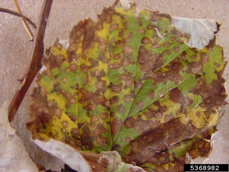 Septoria Leafspot is caused by a fungus – Mycosphaerella rubi. The symptoms are similar to anthracnose leafspots. Spots tend to remain small with light brown or tan centers. Tiny black specks visible with a hand lens develop in the centers of leafspots. Chemical control is not usually necessary.