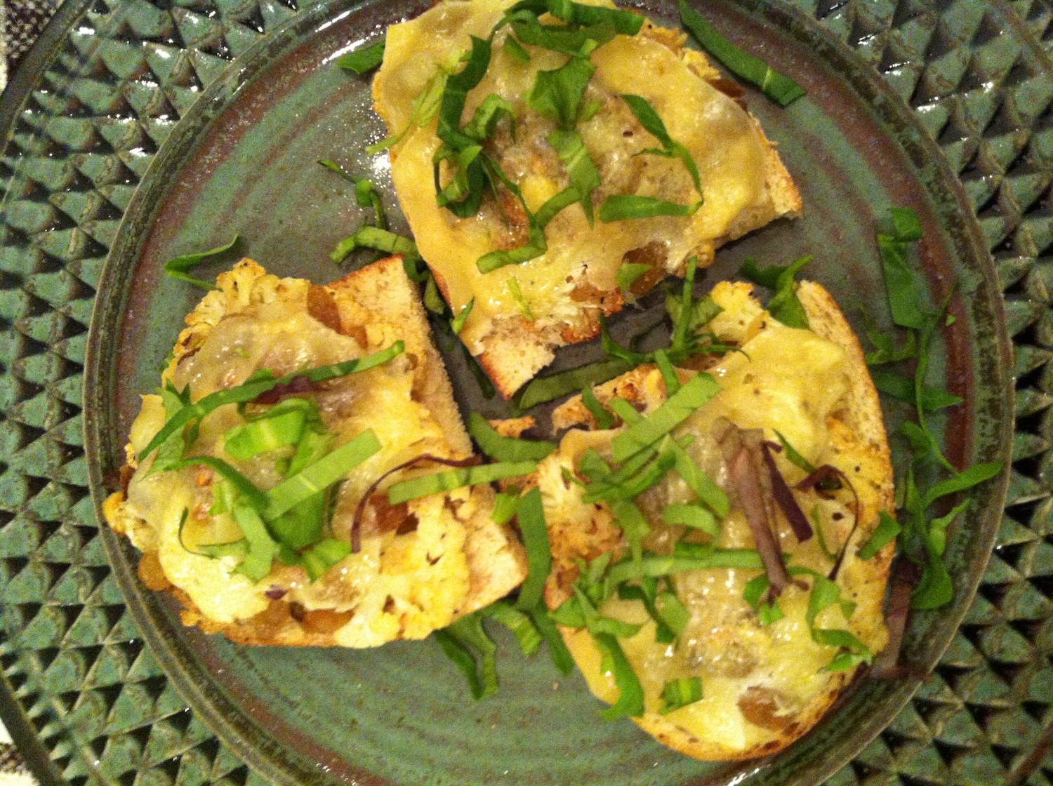 The simple recipe I want to share with you this month is taken from the epicurious website. Baked slabs of cauliflower stretch across eight open-faced sandwiches, topped with cheese, nuts, and golden raisins. The combination is irresistible. Add some simple greens or a cup of soup, and you have a satisfying supper without much fuss.