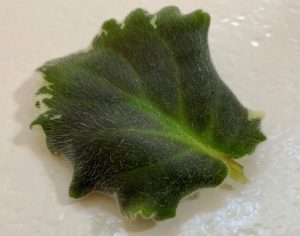 African violet leaf with petiole, ready for rooting. Photo: Nancy Bishop -
