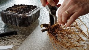 - Snip off a root (or roots) as close to where it joins the crown as possible.