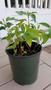 Softwood cuttings: This is the soft, new growth that is produced at the tip of a woody stem on a shrub, vine, tree, or woody-stemmed perennial. The cuttings should be made just as the season’s new growth begins to harden. This stage occurs for many woody plants in late spring through mid-summer. The stem should snap easily when bent and the leaves should be graduated in size with both larger, older leaves and smaller, newer leaves. To propagate softwood cuttings, follow the same steps as for herbaceous cuttings above.