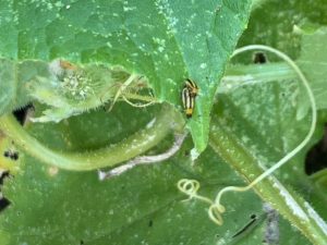 Deeper explanation of cucumber beetle management is available in the publication Cucumber Beetles in Home Gardens from the University of Minnesota Extension.