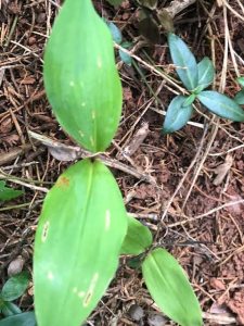 Last spring, I started noticing odd oblong spots on my Solomon’s seal (Polygonatum odoratum). At first, I wasn’t worried, merely curious. Then some of the spots morphed into slits in the leaves.