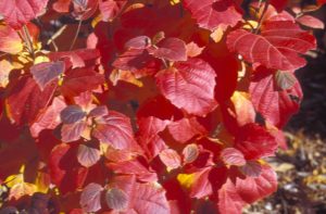 When it comes to fall color, Fothergilla (pronounced fah-ther-GILL-ah) is one of the showiest shrubs in the landscape.  It provides a kaleidoscope of colors — shades of purple, maroon, burgundy, red, orange, yellow, and gold.  Better yet, this shrub extends the show well into November, long after most other woody plants have dropped their leaves.  Its colors do vary from year to year, depending on rainfall, temperatures, and amount of available sunlight.