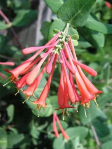 coral honeysuckle (Lonicera sempervirens)             March-July sun, partial shade,