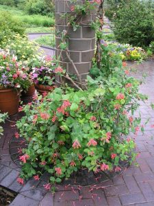 Some hummingbird afficionados plant nectar-rich flowers native to Central or South America — the hummers’ winter habitat.  For a list of warm-climate nectar-rich plants for hummingbirds, see the plants marked with an asterisk at http://www.hummingbirdsociety.org/hummingbird-flowers/.  You’ll find some of these on the list of annuals and tender perennials below.