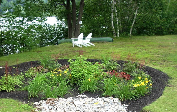 A rain garden’s finished depth should be 6-8” lower than the surrounding soil surface. The depression may need to be dug 12” deep if compost is being added to the garden soil, or if plants with large root balls are being planted, or if mulch is applied. The kind of soil in your rain garden is very important. The soil needs to be porous enough to soak up water within 48 hours to prevent plants from drowning, and to keep mosquitoes from breeding. Remember that clay soil is not ideal as it inhibits drainage. You may need to add compost to lighten the soil if you have heavy clay soil.