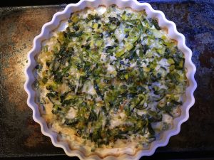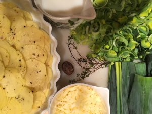 - Heat oven to 350º degrees and butter a 2-quart gratin dish. Wash the leeks to remove any grit and slice thinly crosswise.