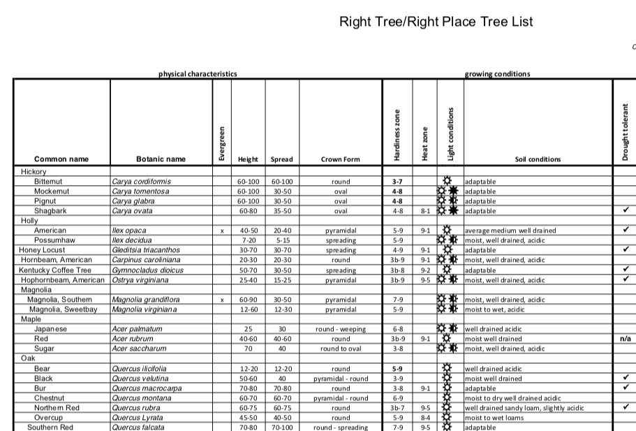 - Right Tree-Right Place Tree List/Tree Stewards (comprehensive and local)