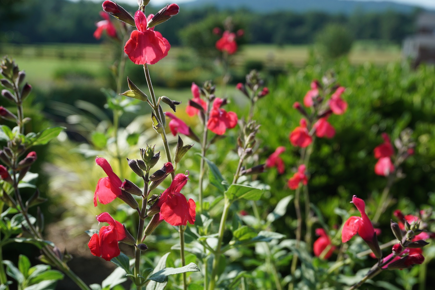 Salvia falls into the “bet you can’t plant just one” category.  With so many colorful selections to choose from, it’s easy to become enamored by this species. They are reliable bloomers when the summer heat is oppressive and there’s not a rain cloud in sight.  Not only do they add much needed color to the late summer garden, they also attract and feed a wide range of pollinators, including bees, butterflies, moths, and hummingbirds.