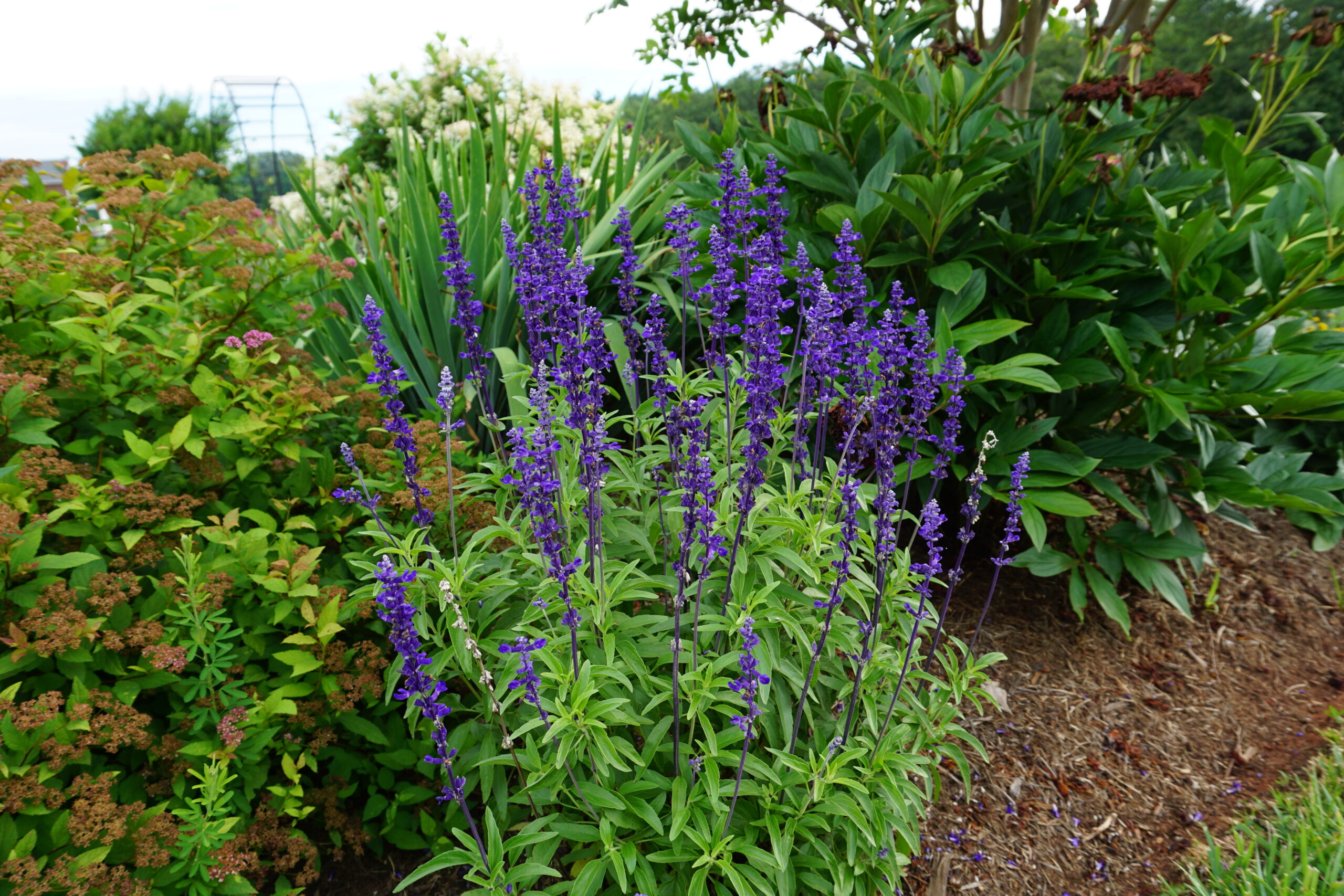 • Salvia x sylvestris ‘Blue Hill’ — This is another popular spring-blooming salvia with lavender-blue flowers that are lighter than those of ‘May Night’.   This cold hardy cultivar does well in heavy clay soils, is drought tolerant, and is a good choice for a xeric garden.   Because Blue Hill has a tendency to flop, ‘May Night’, with its more upright habit, may be a better choice.