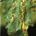 Early blight is caused by the fungus Alternaria solani, and it is common in Virginia. It occurs to some extent every year wherever tomatoes are grown. Don’t be confused by the name “early” as the disease may occur at any time during the growing season. Early blight causes irregular, brown leaf spots (lesions) that range in size up to ½ inch in diameter.
