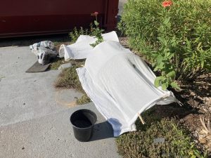 — “If you cannot take the plant to the shade, then bring the shade to the plant. Utilize shade cloth, screening, or even white sheets to reduce the amount of light hitting the plants and the surrounding soil. Putting up some type of shade cover helps the soil and plants stay a few degrees cooler while reducing the amount of moisture lost.” Iowa State Ext/Managing the Garden in Extreme Heat