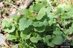 Garlic mustard (before flowering).. Photo: Rob Routledge, Sault College, Bugwood.orgGarlic mustard in flower. Photo: Richard Gardner, Bugwood.org