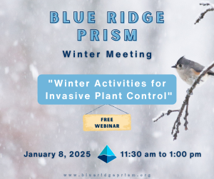 Winter is a good time to attack many invasive plants, and in fact, that’s the focus of the upcoming Winter Meeting of Blue Ridge PRISM. You won’t want to miss this free webinar on January 8, 2025, 11:30 am–1:00 pm on Zoom. You can submit questions to the panel in advance. Find out more and Register Here.