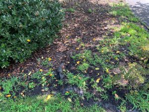 Featured Photo: Weeds and tree shoots growing through landscape fabric. Photo: R Morini