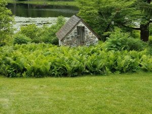 Once established, ferns are undemanding and require very little care. They grow in shady environments that would discourage fussier plants. Most fern species prefer slightly acid, woodsy soil, with regular moisture.  The accompanying photo is of a fern garden that has existed since the 1930s and possibly longer.  For the past 23 years, the current property owner has left the ferns alone to grow as they please. Despite their benign neglect, they are quite healthy and happy as well as extraordinarily beautiful in their woodland setting.