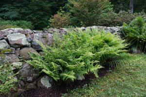There’s a fern for every need.  Upright ferns such as royal fern, cinnamon fern or ostrich fern offer height and drama.   Lady fern, ebony spleenwort, and some of the wood ferns (Dryopteris species) provide a round or mounded shape.  Maidenhair fern, Japanese painted fern, or autumn fern lend a pleasing cascading or draping effect.