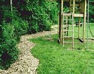 • If the yard is fenced, keep the inside of the fence cleared and clean. If not fenced, a 3 foot wide wood chip or gravel transition zone between lawn and woods has been shown to provide a barrier to tick entry.  See photo above.