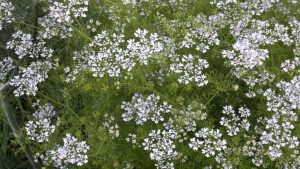 The Umbelliferae family, which have flowers born in umbels or flat-topped clusters, such as fennel, dill, cilantro, parsley and carrot.