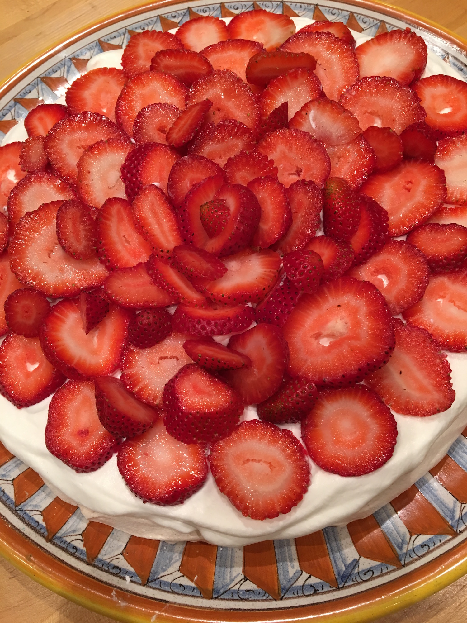 There are many variations for pavlova. You may flavor the whipped cream or substitute lemon curd for the cream. Kiwi fruit and other berries may be used in addition to or in place of the strawberries. They are all light and delicious!