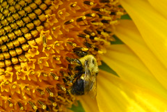 Composite flower (sunflower) pollination. Photo by wackybadger