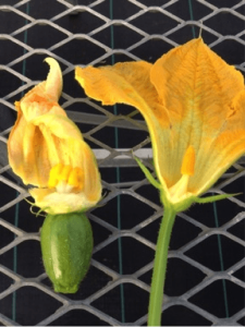 Female and male pumpkin flowers. Photo: plantbreeding.coe.uga.edu