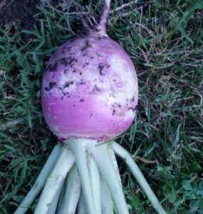 Don’t forget, turnip greens are delicious and loaded with vitamin C. Your turnips will tolerate picking some of the leaves while they are still growing. Just be sure to leave a few leaves on each plant so they can still photosynthesize properly. When you’re ready to pull up the roots, use those healthy leaves also. You’ll find many recipes online for preparing greens.