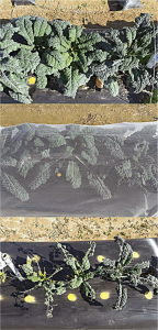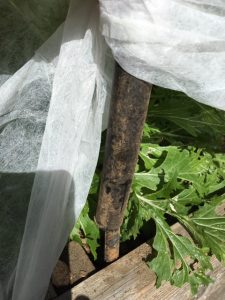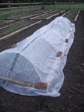 I was driven to try row covers after losing a couple of kale and collard crops to cabbage moths. Not wanting to go the chemical route, they offered a way to get both an earlier start and good plant protection. In any case, they worked. Since the greens don’t need to be pollinated, the covers can stay on all summer and into the winter. The greens can often survive our winters without cover, but their dormant time is lessened by the row covers, allowing harvest for an added few weeks.