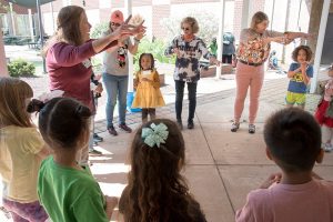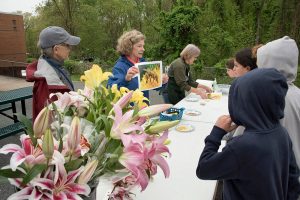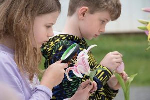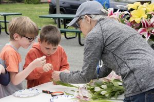 Utilizing a paved open space outside the building, PMG volunteers set up three activity stations, so that children could rotate through these hands-on activities at assigned times. With a nod to the lasting effects of elementary school learning, the floral department manager at the Harris Teeter grocery store at Hollymead supplied more than 100 gorgeous fresh-cut flowers to Stony Point at no cost. Why? Because she remembered her own grade-school science classes where they explored flower parts!