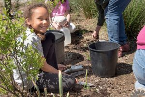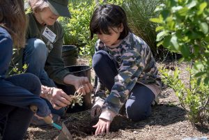 During a recent renovation of the school building, many existing plantings at Crozet had to be moved to accommodate the new construction. Crozet families and PMG volunteers assisted in those efforts, digging diligently to create new beds, adding compost, and marking spaces for more than 120 flowering plants. Later, a charming new children’s garden was created behind the building, where PMG volunteers helped children use a variety of tools to install native plantings.