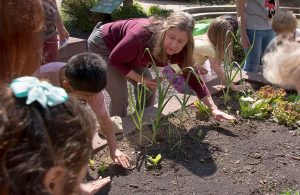 Lessons and activities focus on plant parts and function, seeds/planting/germination, plant growth and life cycles, pollinators, butterfly host and nectar plants, worms and composting, healthy soil, observation skills, measurement, and harvesting and tasting fresh produce.