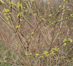 If you’re out on a forest trail this month, keep an eye out for the clouds of yellow created by Lindera benzoin — our native spicebush — a deciduous shrub whose greenish-yellow blooms appear in March in Virginia.  Lindera benzoin is remarkable not only for its spring and fall color, but also for its adaptability. It is not fussy about either soil moisture levels nor about pH nor about light. In nature, it is most often found along streams, in floodplains and ravines, but also in dryer upland forests, and is widely distributed throughout eastern North America and in Virginia.  Indeed, the Virginia Native Plant Society named Lindera benzoin the native plant of the year in 2006.   I highly recommend the essay that accompanied that award, VNPS Wildflower of the Year: Spicebush (Lindera benzoin).