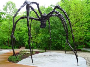 Now that’s a lawn ornament! Crystal Bridges Museum of American Art, Bentonville, Arkansas. Bronze Sculpture — Maman — by Louise Bourgeois. Photo: Snuffy Smiff, Wikimedia Commons, CCO 1.0 DEED