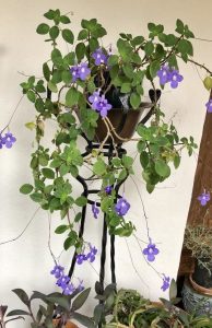 Because it is easy to grow and flowers most of the year, the Streptocarpella makes an ideal gift, and that is how this plant entered my life. Its fuzzy, chubby stems and leaves were not particularly impressive, but its flowers are a heart-stopping lavender blue that will enliven any winter day. But there’s more — as I discovered when I moved my streptocarpella out onto the deck for the summer. Its stems cascaded over the sides of the pot and it bloomed profusely all summer long. And though there are recommended cultural practices, basically this plant will perform beautifully even if you don’t provide ideal conditions. The only problem I’ve had is figuring out its proper name. My friend gave me only one name — streptocarpella — and she explained that to remember it, just think of strep throat. Ugh. The official pronunciation is “strep-toe-CAR-pell-uh” — but there’s nothing about this plant that will remind you of strep throat; it’s easy to grow, adaptable, and is simply gorgeous all year.