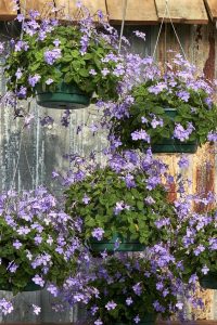 In late spring — after all danger of frost is past — I move my streptocarpella onto my deck into a position where it gets a bit of protection from hot afternoon sun. Sometimes I place it on a table, where its stems will cascade almost to the floor, but you could try putting it in a hanging basket, a very popular alternative.