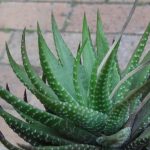 Haworthias are particularly easy to grow indoors, since they will tolerate even lower light and less water than most succulents. Zebra plant (Haworthia fasciata) has thick, dark green, fleshy leaves that arise from low on the plant, and not surprisingly, the leaves have white stripes. Zebra plant has shallow roots, so it a does well in a shallow pot. You’ll need to repot every year or two because plants need to get rid of old roots to grow new ones. It only grows about 5 or 6 inches tall and wide.