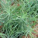 There are several popular species of senecio ( sin-Ess-ee-o), usually with tubular steel blue or grayish green leaves, often known by names such as “chalk fingers” or “blue chalk sticks.” Although most are small, a few get as tall as a foot. If they get too tall, you can pinch them back, which will promote branching.