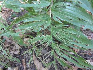 Extensive slug damage on a woodland plant. Photo: Missouri Botanical Garden