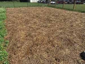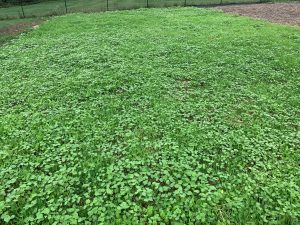 Best soil building practice today is keeping live roots in the soil, year-round. Cover crops are a recommended way to do this when other crops are not being grown. A diverse winter-hardy cover crop is a great soil builder. The photo above shows a crop that includes crimson clover, a legume that will add nitrogen, daikon radishes that will loosen compacted clay soil, annual rye grass for added root mass and mixed grains. There is also some self-seeded buckwheat from the summer cover crop that will be winter killed but will add organic matter to the soil next spring so is a do-no-harm invader.