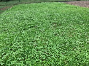 Best soil building practice today is keeping live roots in the soil, year-round. Cover crops are a recommended way to do this when other crops are not being grown. A diverse winter-hardy cover crop is a great soil builder. The photo above shows a crop that includes crimson clover, a legume that will add nitrogen, daikon radishes that will loosen compacted clay soil, annual rye grass for added root mass and vegetation. There is also some self-seeded buckwheat from the summer cover crop that will be winter killed but will add organic matter to the soil next spring so is a do-no-harm invader.