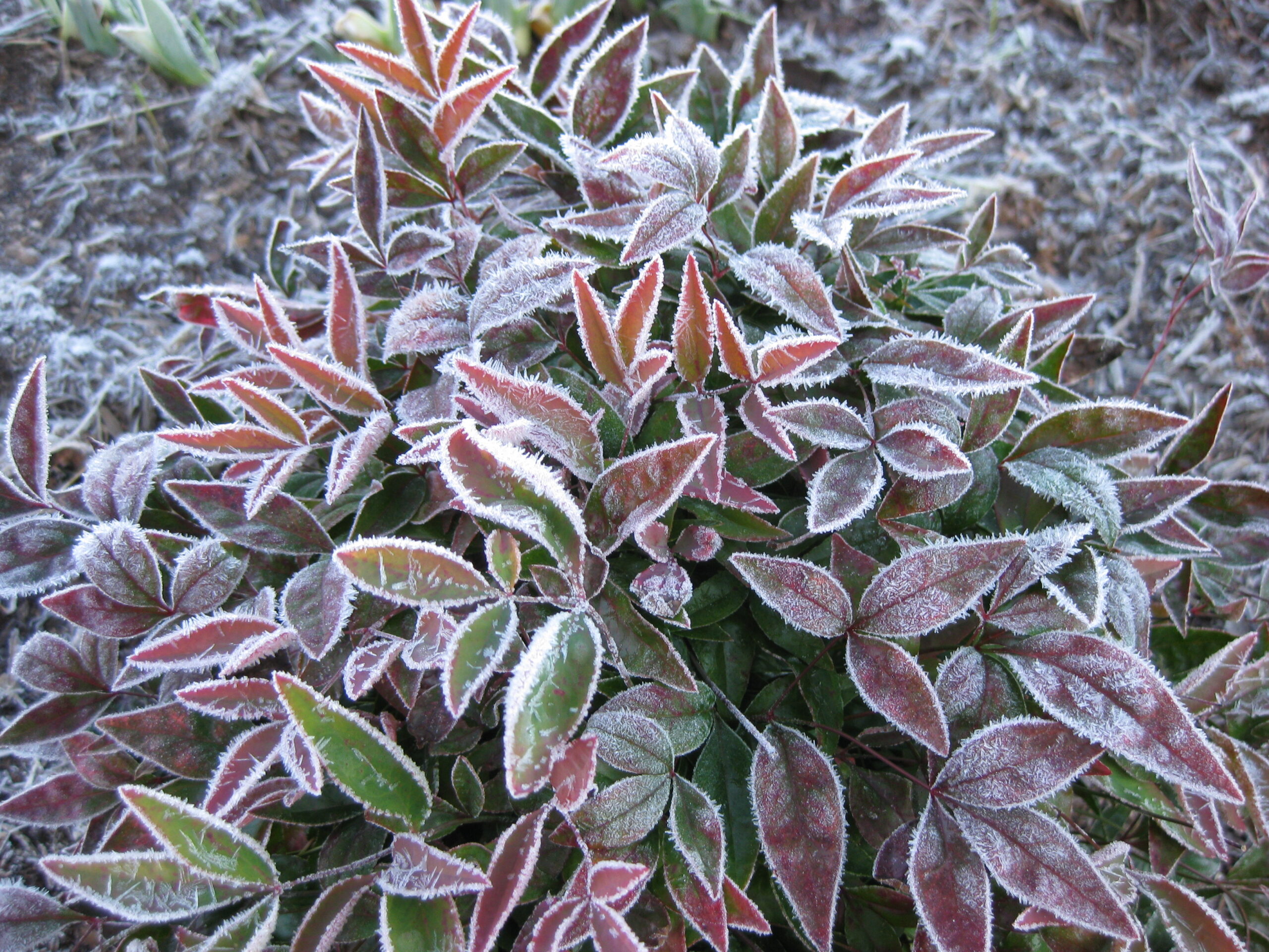 Frosted Nandina Foliage in Winter Garden
