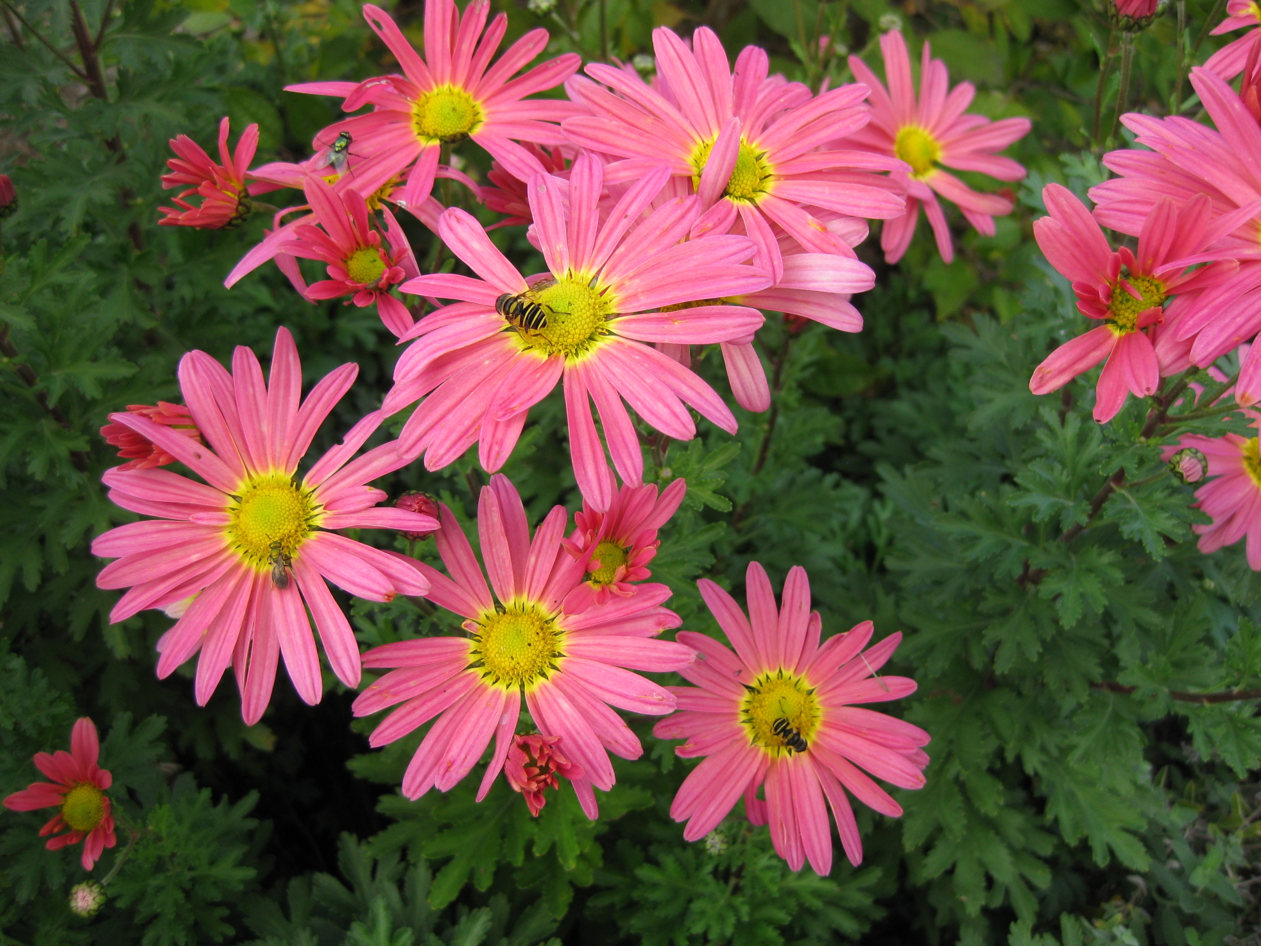 Pollinators on the last of the Fall-Blooming Hardy Chrysanthemums