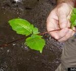 Japanese Honeysuckle (Lonicera japonica) is a rapidly spreading nonnative vine that competes for both above- and below-ground resources, inhibiting the growth of desirable trees, shrubs, grasses, and wildflowers. A woody perennial vine, Japanese honeysuckle retains its leaves well into winter (year-round in mild climates). Hand pulling young vines is effective only if all roots are removed. Any roots left in the soil will resprout. A foliar spray may be a more effective way to kill the entire plant. The best time to spray is autumn and early winter after most native plants have lost their leaves or are dormant, but before a hard freeze (25°F). Foliar sprays are less effective in spring because the herbicide does not thoroughly move from the leaves into the roots during spring growth.