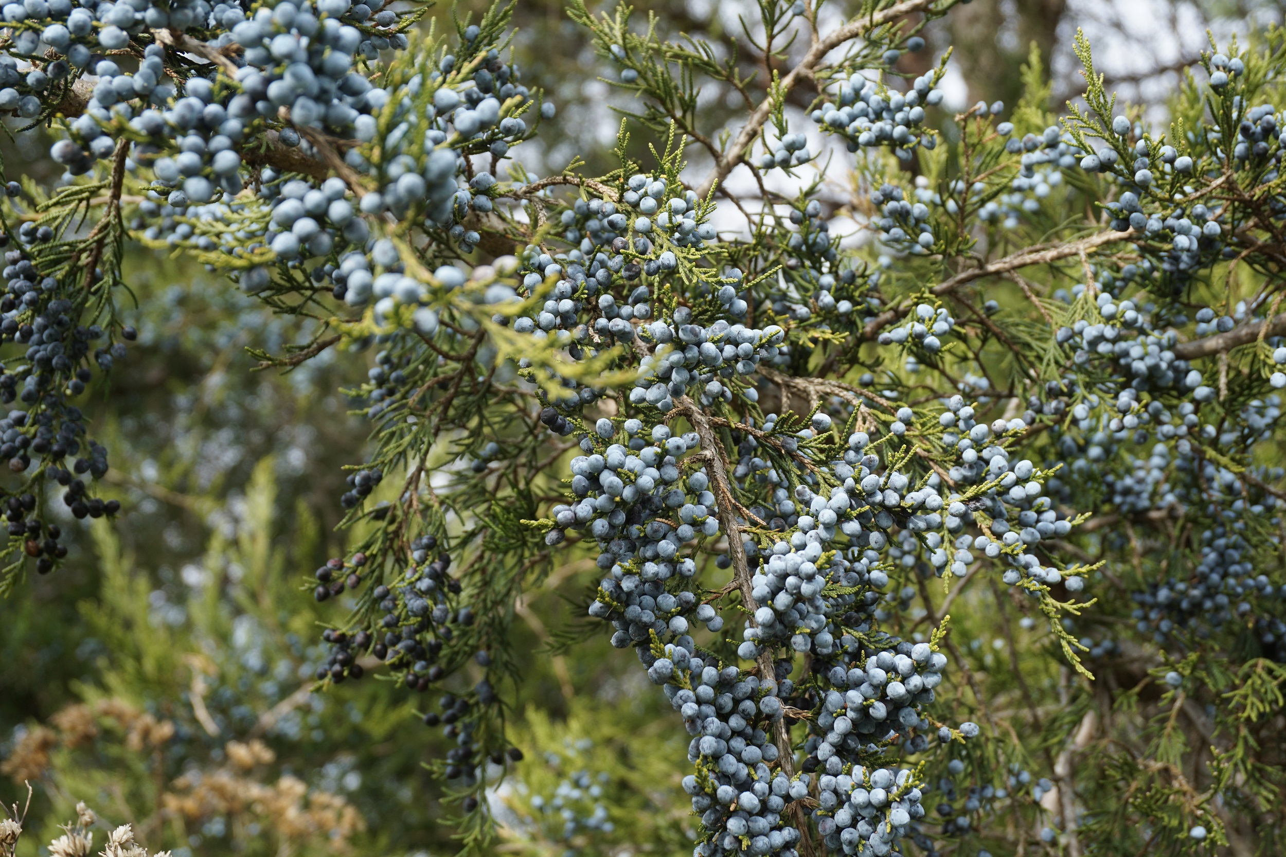 Female eastern redcedar tree with masses of bluish berry-like cones