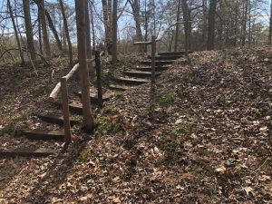 When the Greiners built their house — on a lot near Beaver Creek Reservoir — there were almost too many delightful features to count. But it was later that they discovered perhaps the most remarkable feature of all: an old roadbed. Yes, an old roadbed ran along one side of their property, and then wended its way uphill and across a creek. It was covered with a tangle of invasives, but still recognizable as a road. When the Greiners attended a lecture on early roads of Albemarle County, they learned that “their” road dated back to 1750, and was a remnant of old Three Notched Road, one of the four roads that Albemarle County constructed in 1750. It originated ten miles north at Browns Gap and terminated at Old Three Chopt Road, one mile to the south. In the 1850’s it became a “turnpike” that the adjoining property owners had to maintain while having the right to collect user fees.