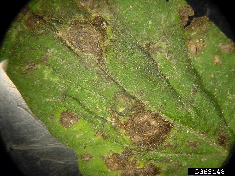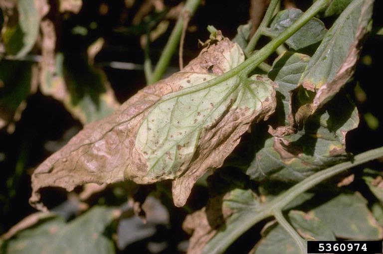 The fungi responsible for this disease can survive up to a year in the soil as well as in infected vine residue, seeds, and weeds left in the garden over the winter. In the spring and summer, spores of these fungi can be splashed or blown to tomato leaves. Warm temperatures, abundant rainfall and high relative humidity favor disease development. The disease is more aggressive when plants are weakened or stressed by poor nutrition, drought or by the wounds of pests.