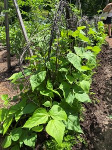 Twigs formed into vertical bean trellis. Photo Credit: Fern Campbell